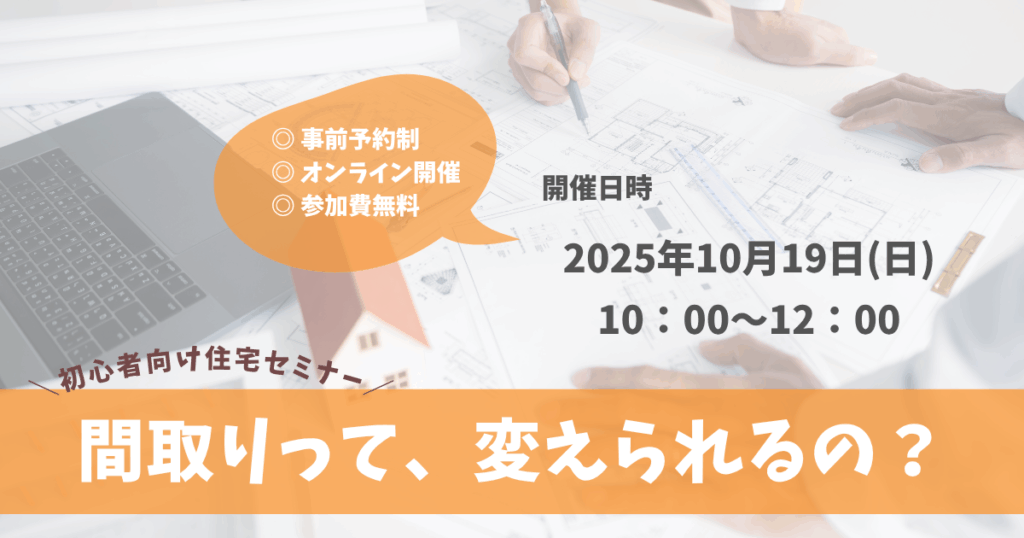 セミナーでは、「よくある間取りの悩み」と「それをどう変えたか」の実例を紹介しながら、自分の理想に近づける方法をお伝えします。
