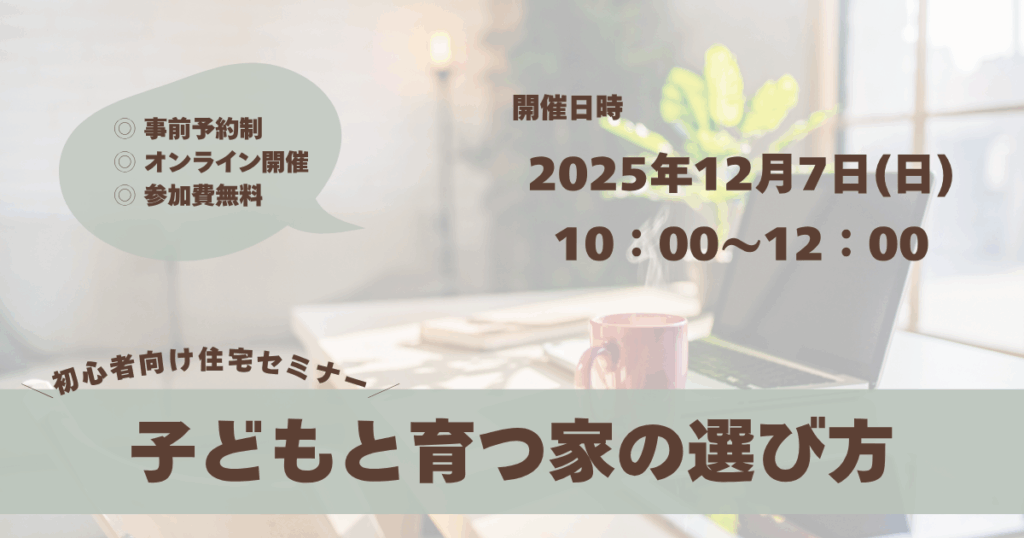【12月7日開催】子どもと育つ家の選び方セミナー──“今”だけじゃなく“10年後”も見据えた住まい戦略