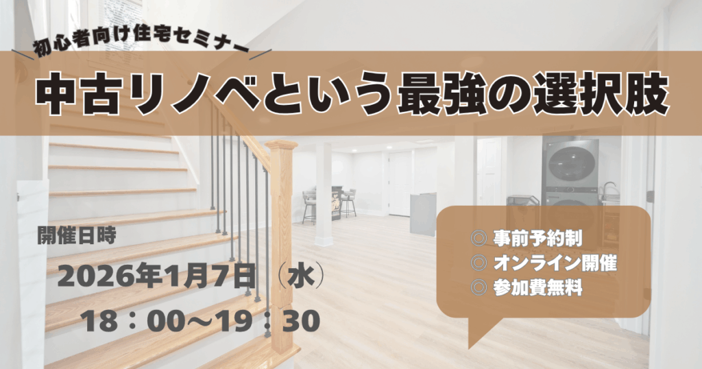 【1月7日開催】予算内で理想の暮らしと資産価値を両立!中古リノベという最強の選択肢セミナー